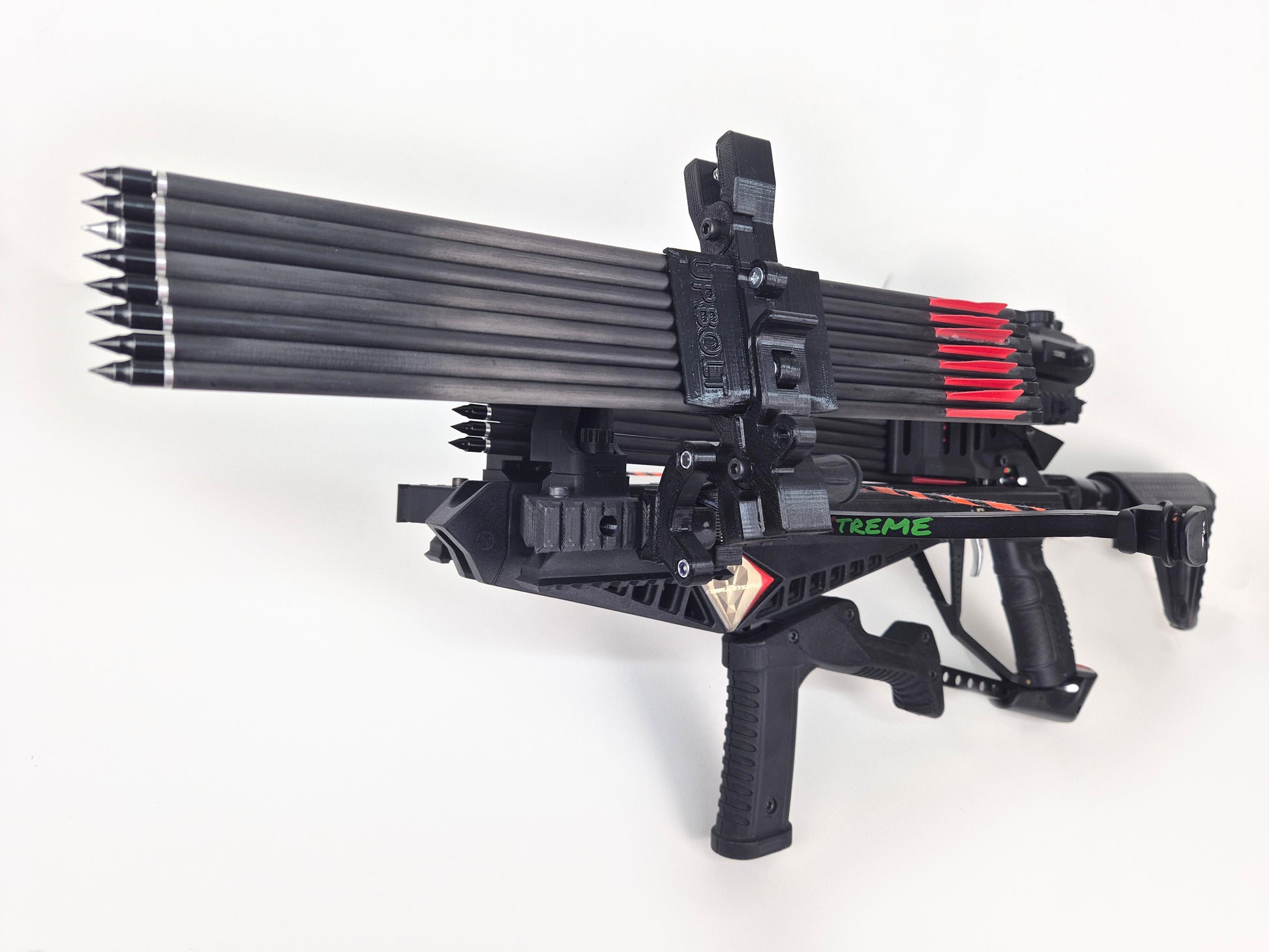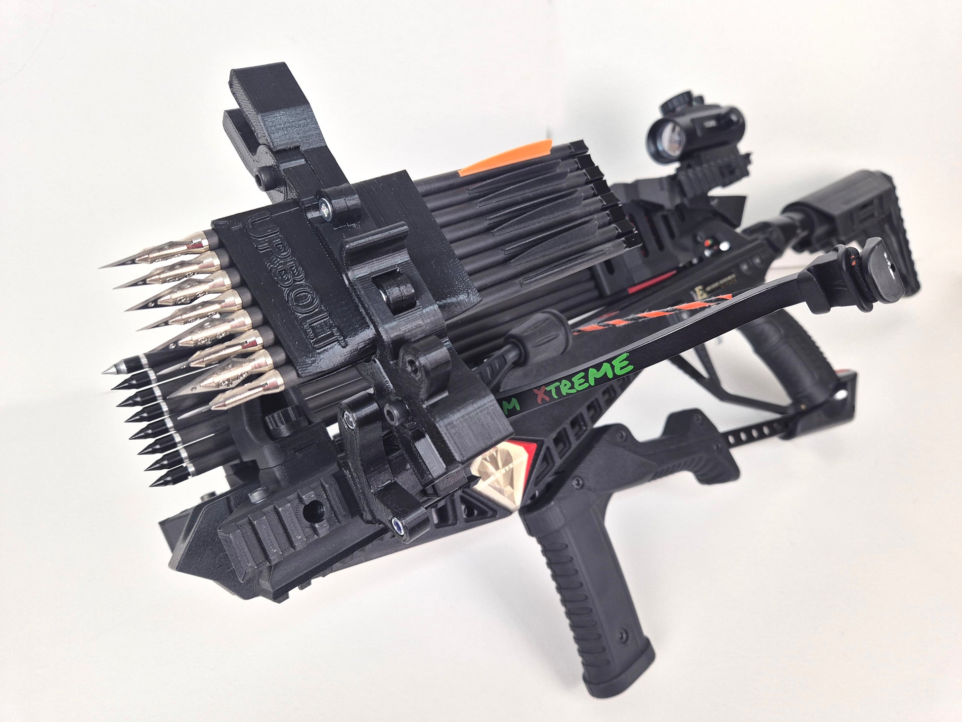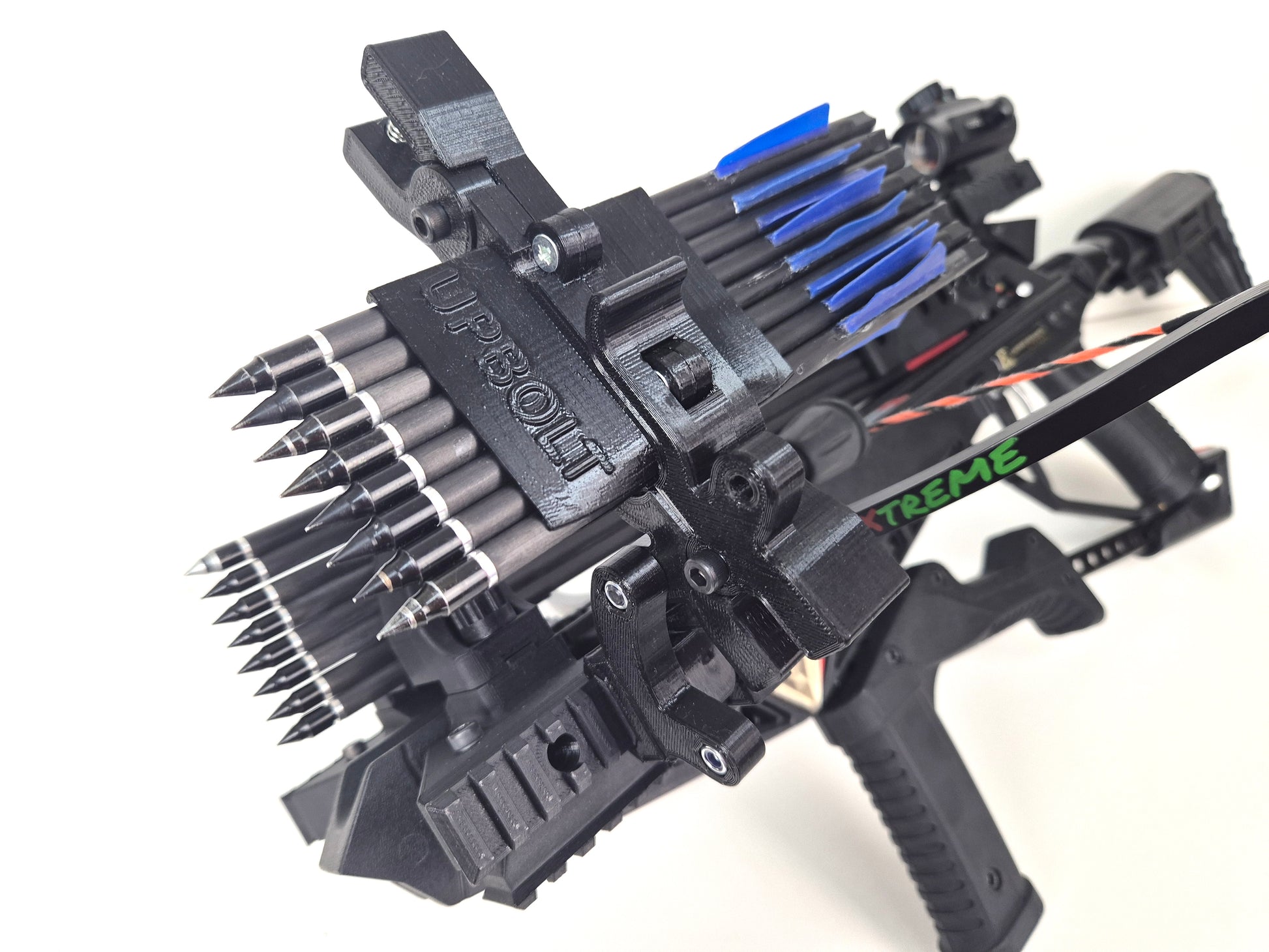 This UPBOLT setup is set of components for holding 8 bolts on the crossbow and quick bulk load of bolts into magazine (aka full magazine reload).