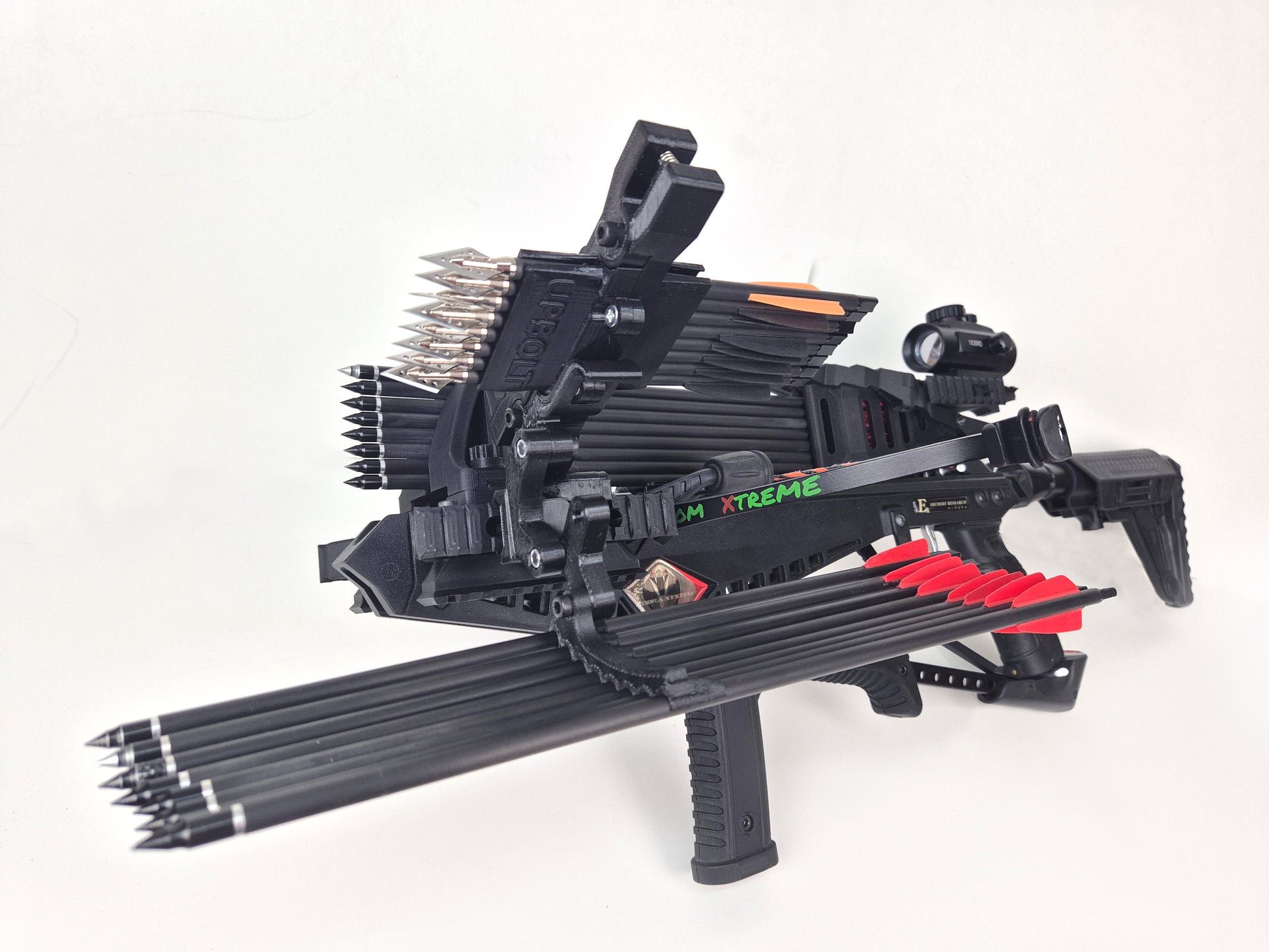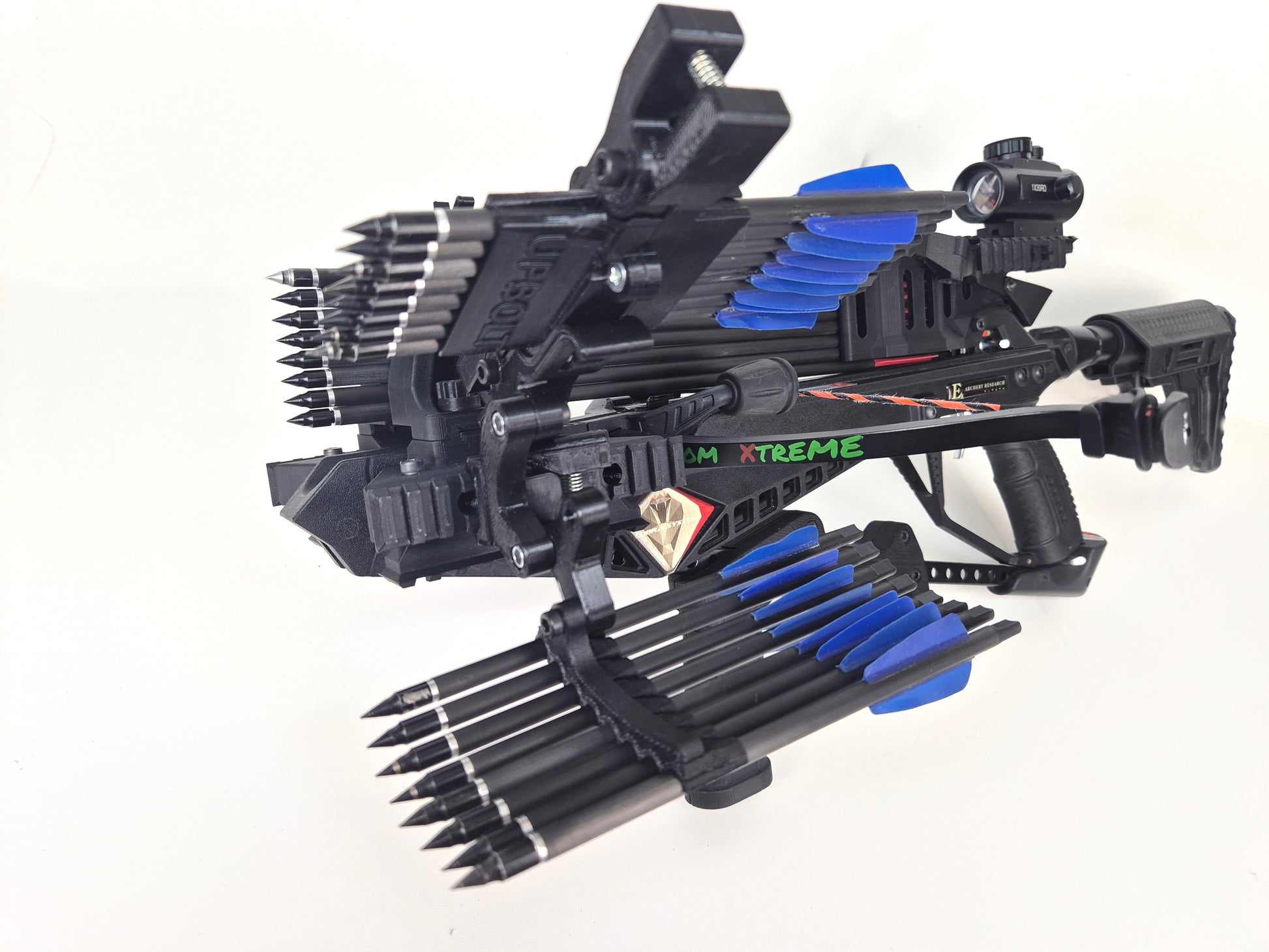 This UPBOLT setup is set of components for holding 16 bolts on the crossbow, 8 of bolts placed in a bolt loader, another 8 bolts placed in a bolt holder, thus it combines two functions: