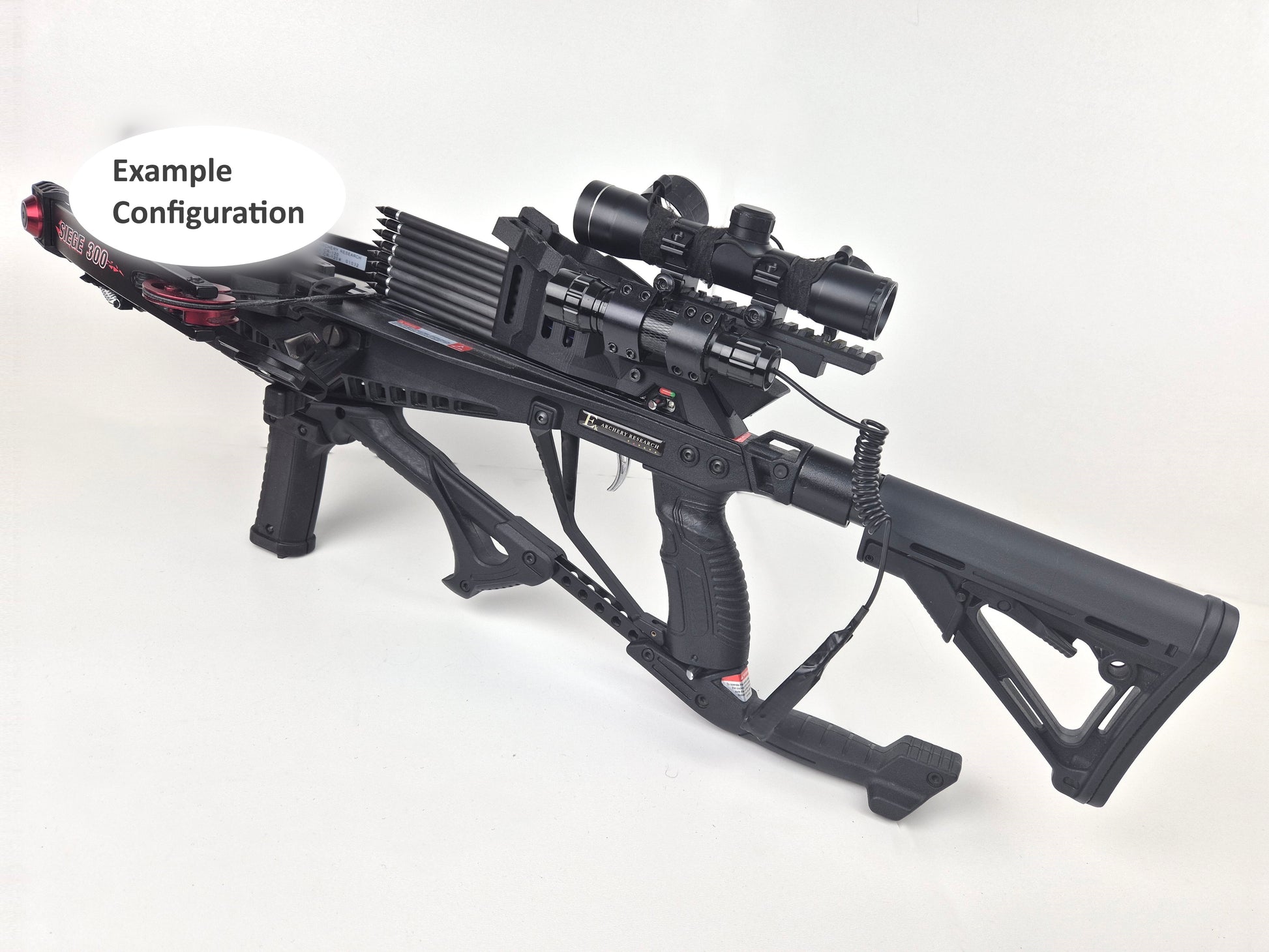 Crossbow bolts, Cobra crossbow, bipod & bipod adapter, optical aiming devices shown in the illustrations are not part of the package.